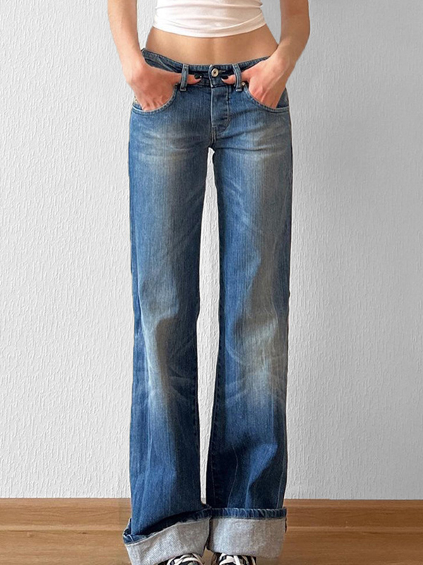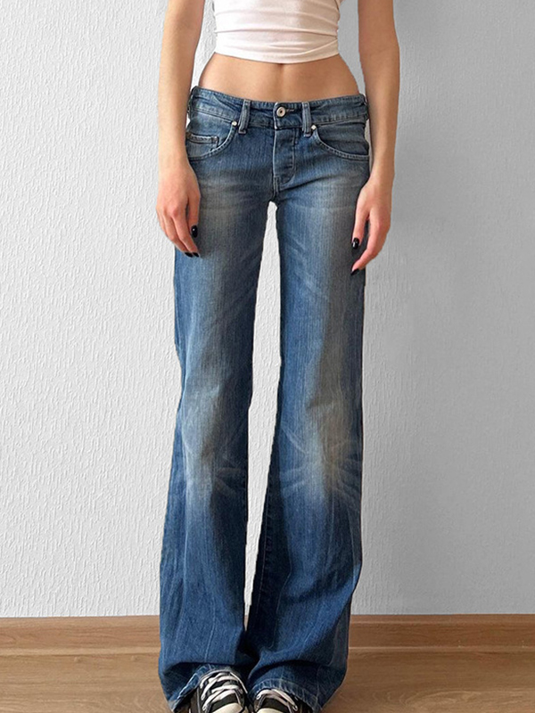 Schlankmachende Basics-Jeans mit niedriger Taille und vielseitiger Schlaghose
