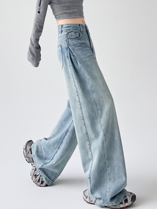 Schlankmachende, drapierte, gerade Boyfriendjeans