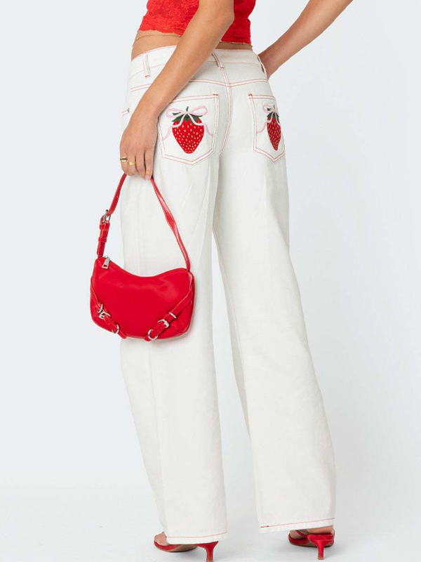 Schleife Erdbeere süße Aufkleber Boyfriend Jeans