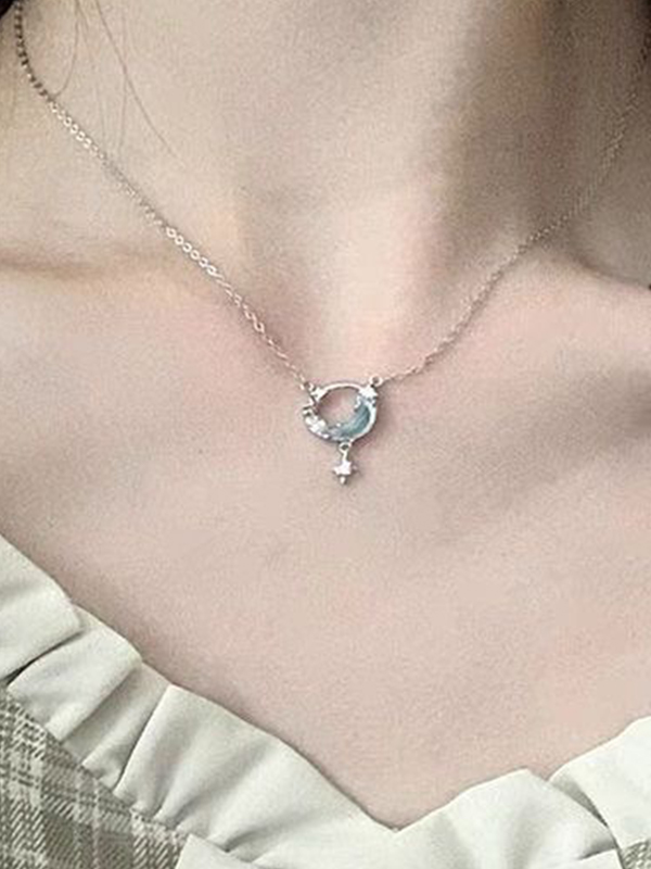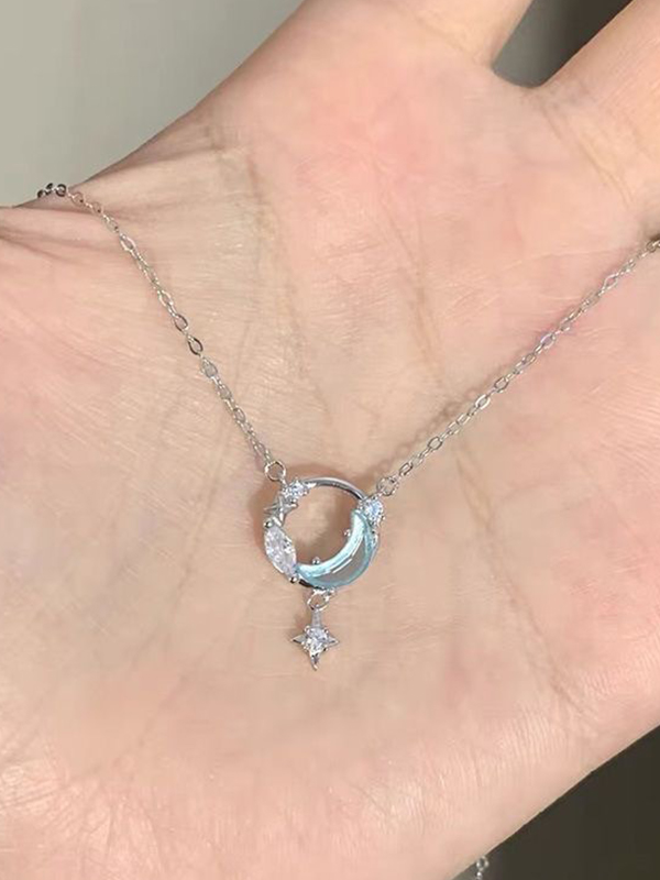 Silberne, ausgehöhlte Stern-Mond-Charm-Halskette