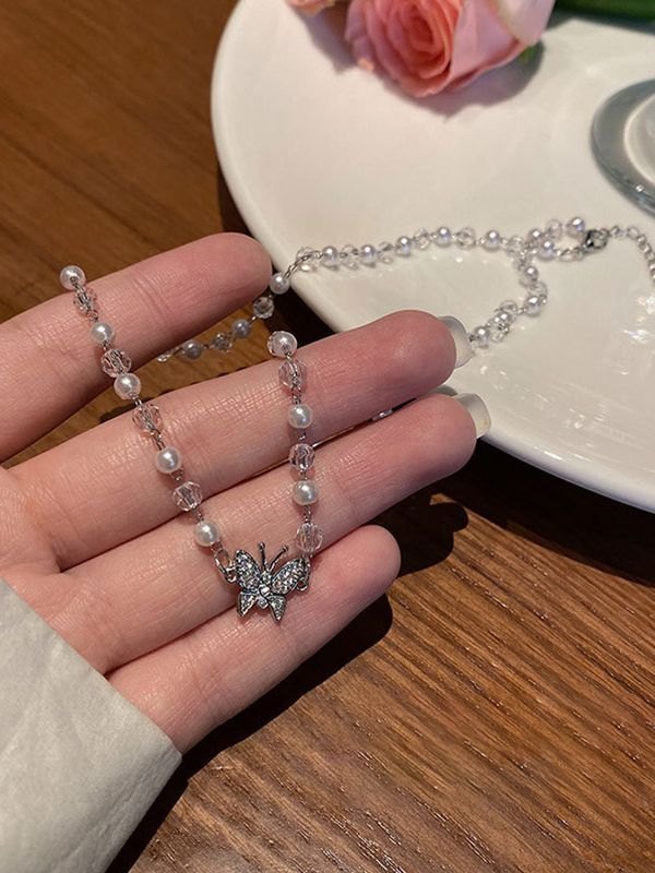 Strass-Schmetterlings-Anhänger-Korn-Halskette