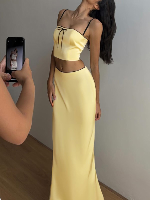 Süßes Trägertop mit sexy Spitze, zweiteilig