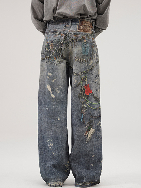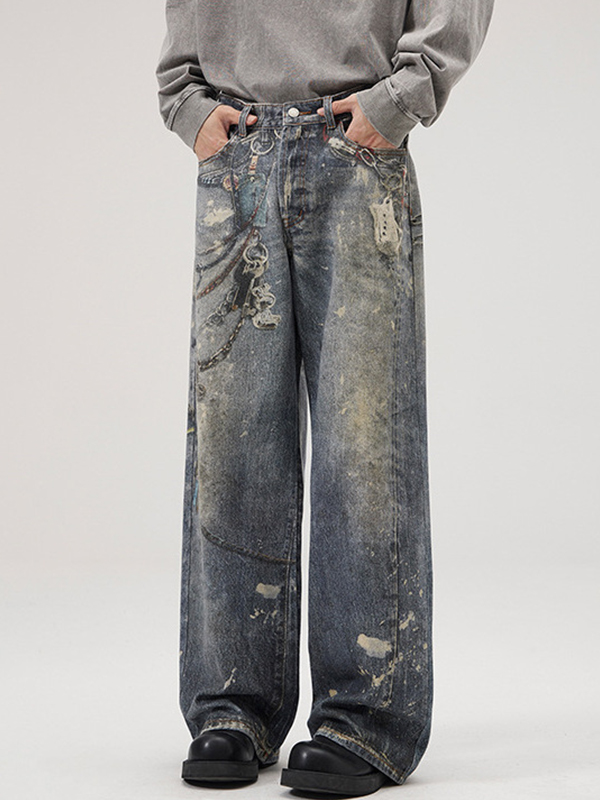 Trendy Marke Lockere Jeans mit weitem Bein und geradem Bein