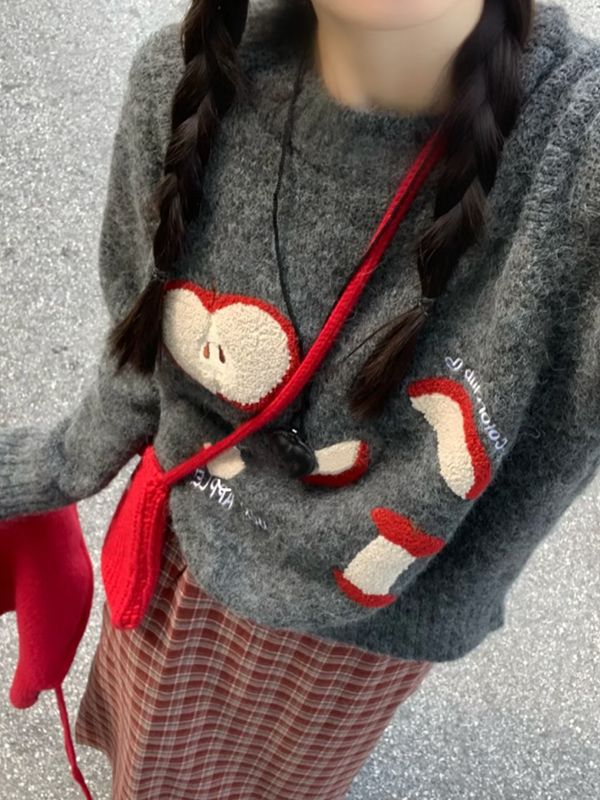 Schreibe die erste Bewertung für „Übergroße Jacquardpullover mit Apfelmuster“