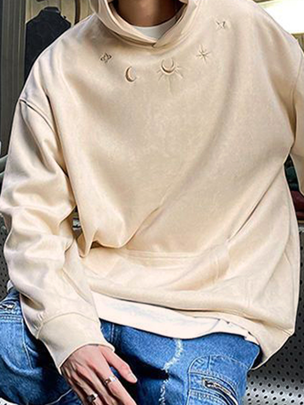 Übergroßer Kapuzenpullover mit Mond- und Sternstickerei aus Wildleder für Herren