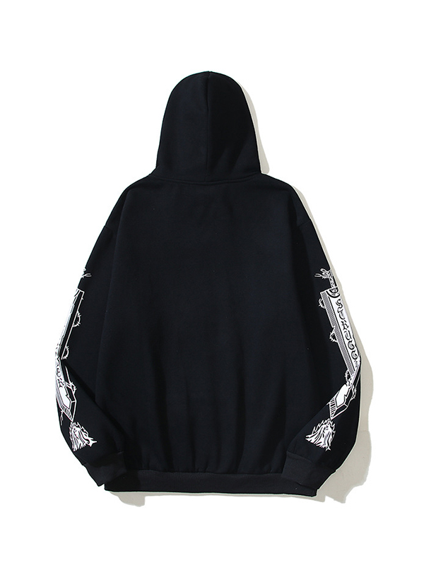 Übergroßer, langärmliger Kapuzenpullover mit Aufdruck aus dunklem Samt für Herren
