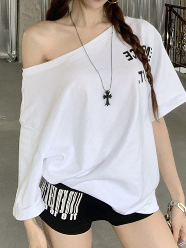 Übergroßes T-Shirt mit kurzen Ärmeln und One-Shoulder-T-Shirt