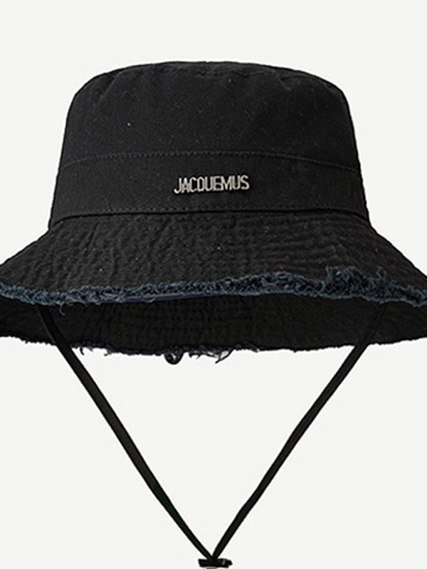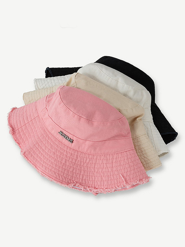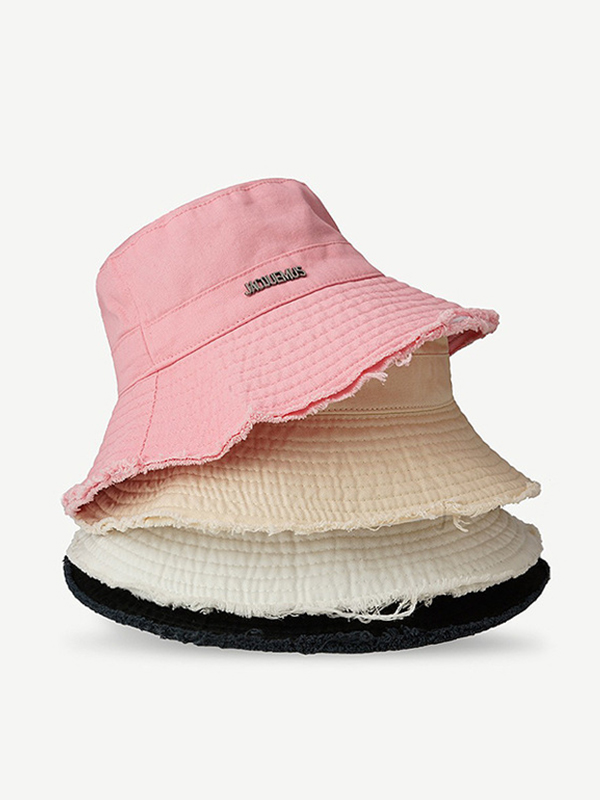 Verstellbarer Fischerhut aus massivem Metall mit Buchstabendekor und rohem Besatz