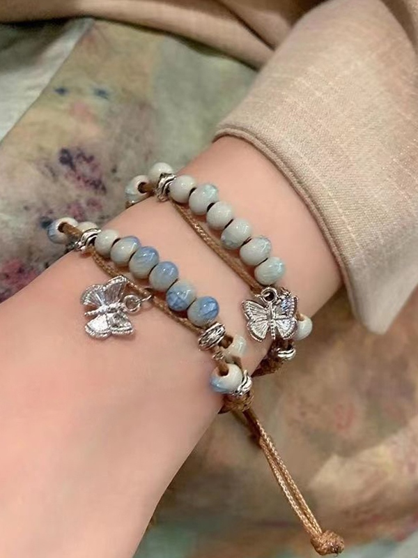 Vintage Schmetterling Keramik Perlen geflochtenes Armband