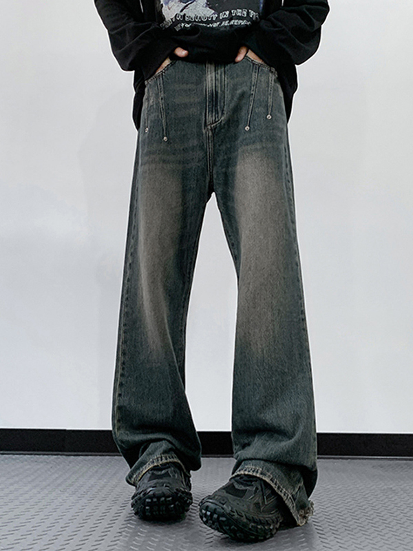 Zerrissene, lose Herrenjeans im Distressed-Vintage-Stil in Blau