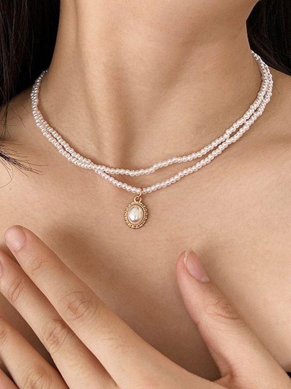 Doppellagige Halskette mit Faux-Perlenanhänger