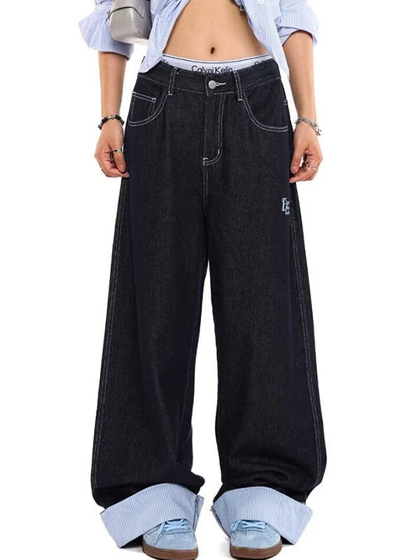 Schlankmachende, drapierte, gerade Boyfriendjeans
