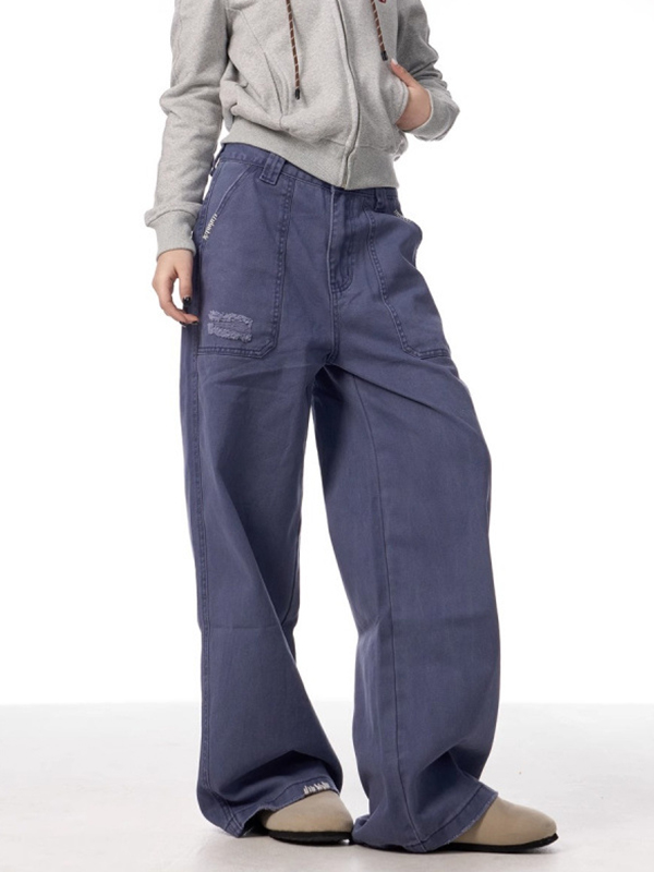 Gerade geschnittene Boyfriendjeans im Vintage-Stil mit weitem Bein