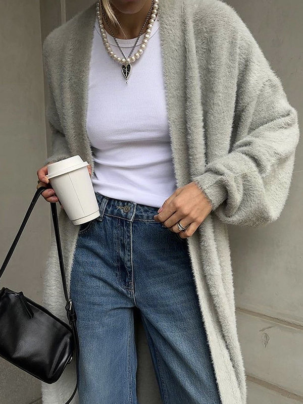 Sexy heißes Mädchen in einfarbiger Strickjacke