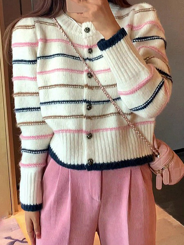 Kontrastfarben gestreifter Kurzstrick-Cardigan