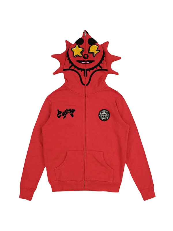 Übergroßer Kapuzenpullover für Herren mit lustigem Aufdruck und Reißverschluss