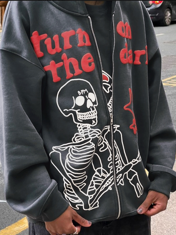 Herren-Hoodie mit Reißverschluss und Buchstabe-Schädel-Grafik