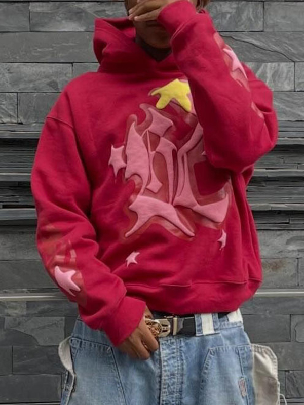 Übergroßer Kapuzenpullover mit Street-Stickerei und Kontrastfarbe für Herren