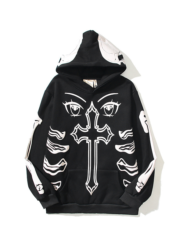 Übergroßer Kapuzenpullover mit Hip-Pop-Kreuzschädel-Print für Herren