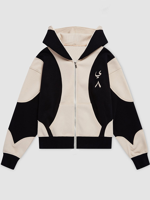 Übergroßer Kapuzenpullover mit Farbblock-Splice-Reißverschluss