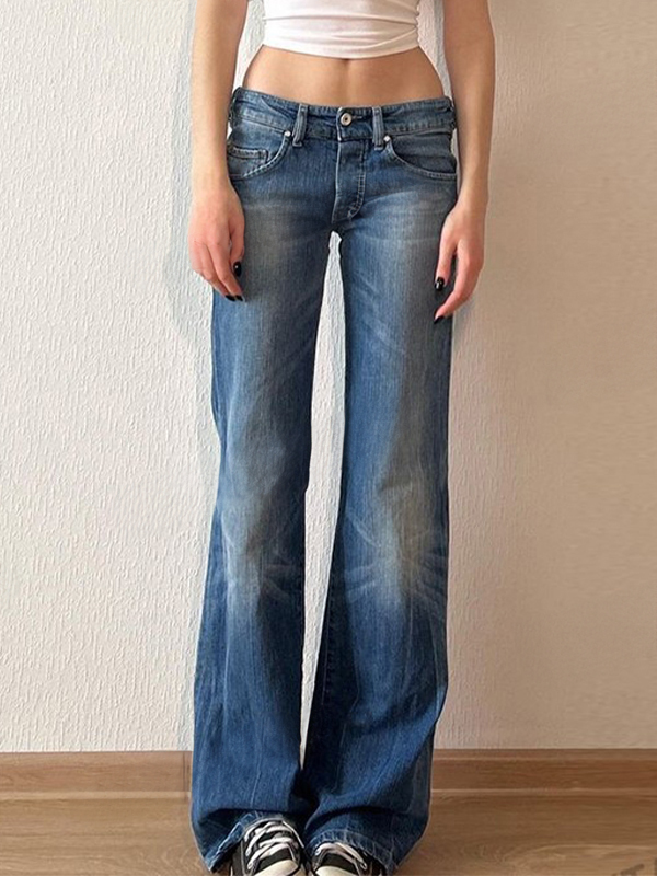 Verwaschene Bootcut-Jeans mit niedriger Taille