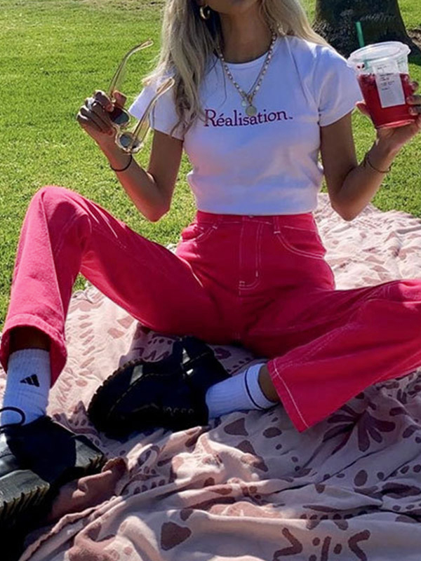 Amerikanische Retro-Boyfriendjeans mit kreativer Stickerei