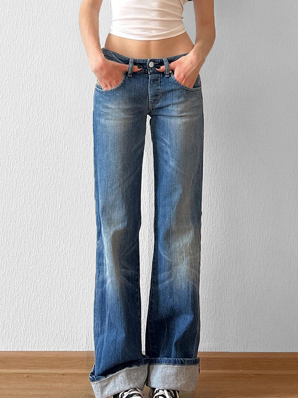 Lockere Jeans im koreanischen Stil mit Gummizug in der hinteren Taille