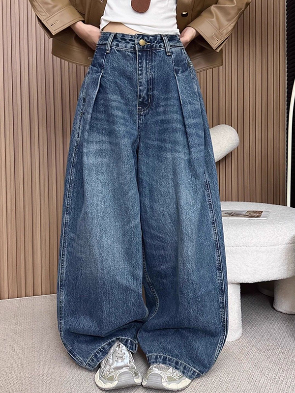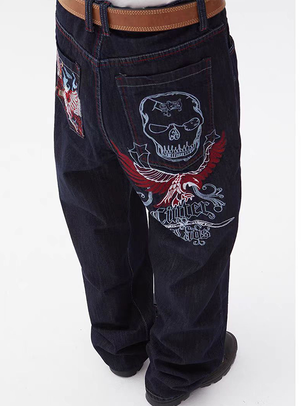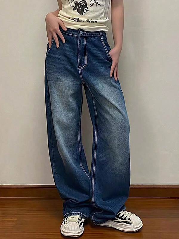Lockere Jeans im American Retro Heavy Industry-Stil mit gewaschenem Bambusmuster