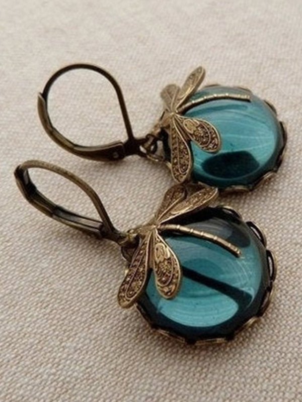 Vintage Libelle Stein Anhänger Creolen