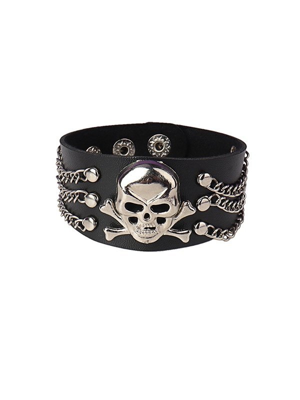 Kette verschönern Schädel Chunky Pu-Leder-Armband