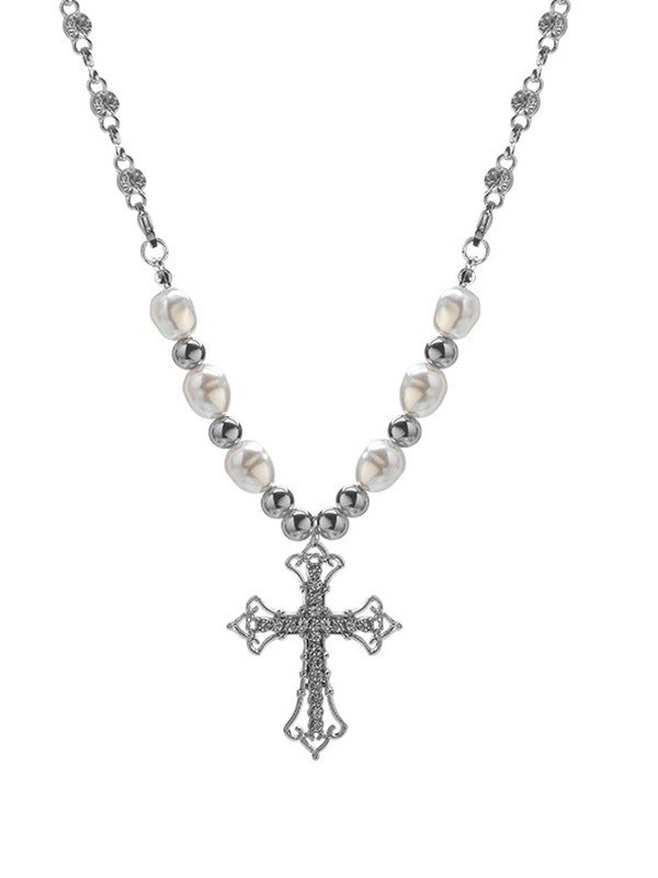 Kreuz-Anhänger Faux-Perlen-Halskette