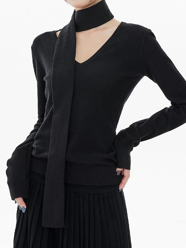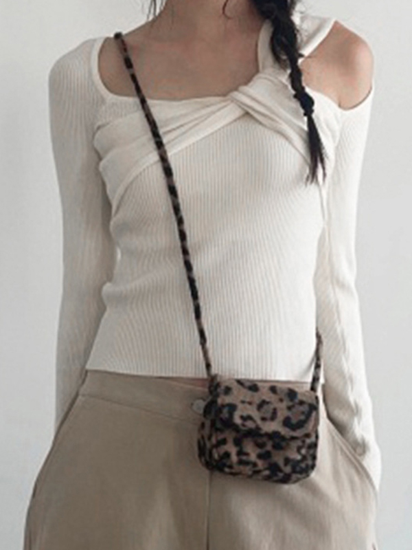 Verdrehter, asymmetrischer, schulterfreier Strick mit langen Ärmeln