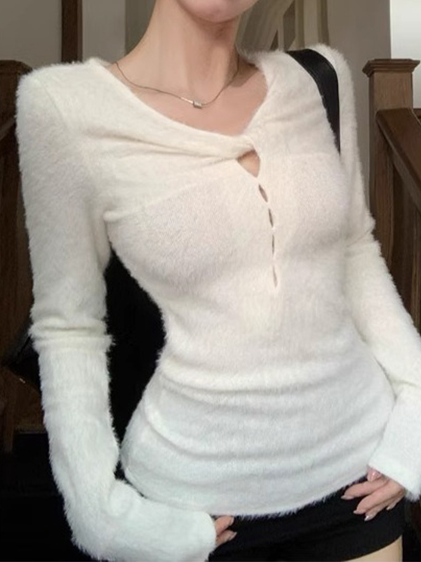 Einfarbige Langarm-Strickwaren