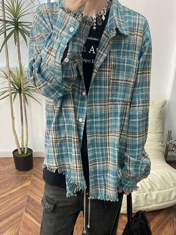 Herren-Langarmbluse mit Vintage-Karomuster und Quasten-Design