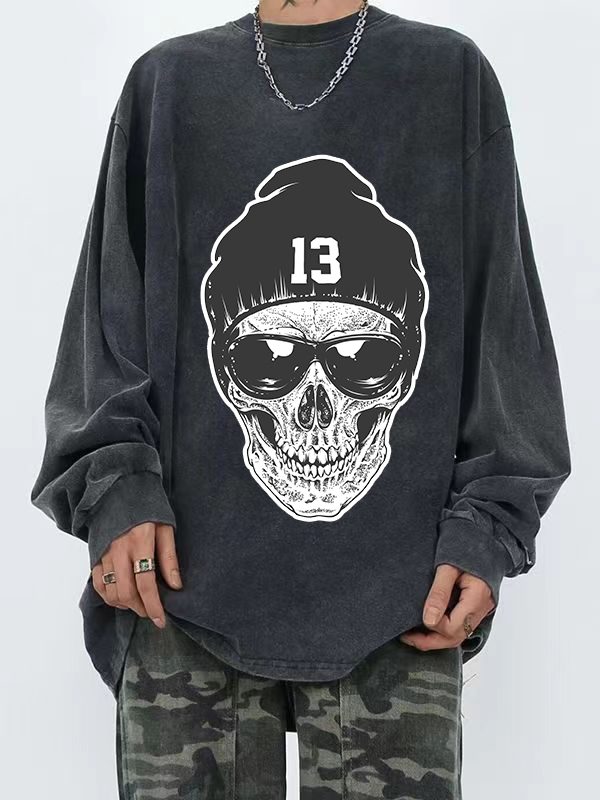 Herren-Langarm-T-Shirt mit Totenkopf-Serien-Print