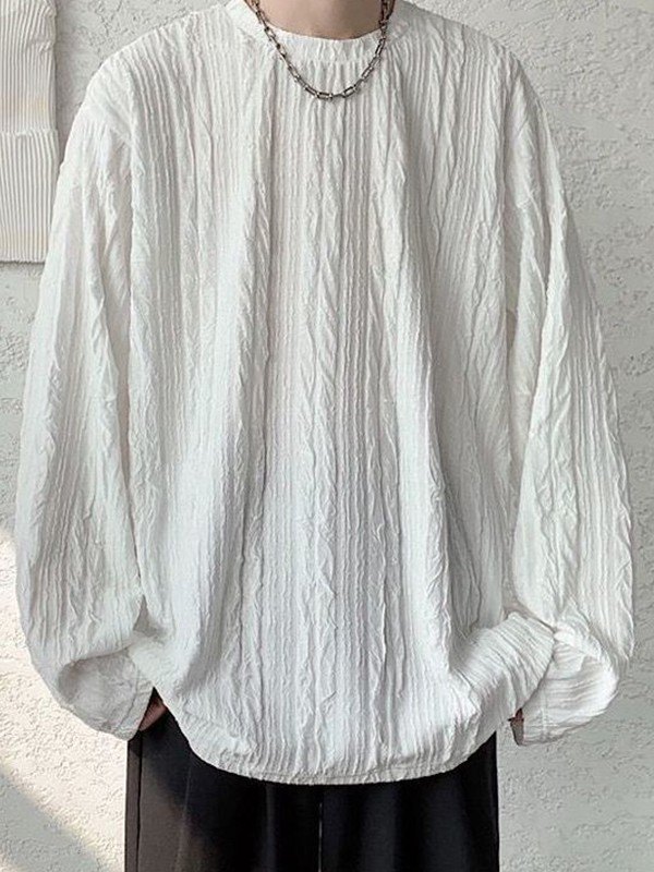 Langarm-T-Shirt mit gekrepptem Rundhalsausschnitt für Herren
