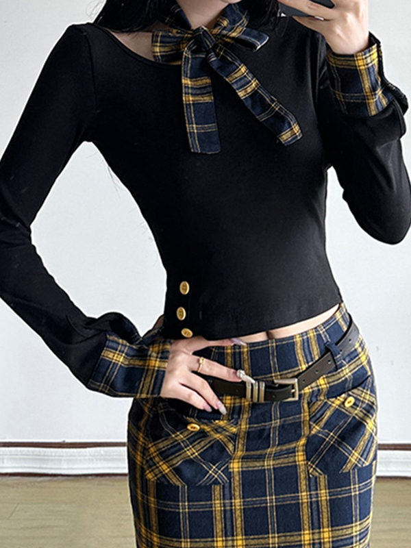 Langärmliges T-Shirt mit Gitternähten