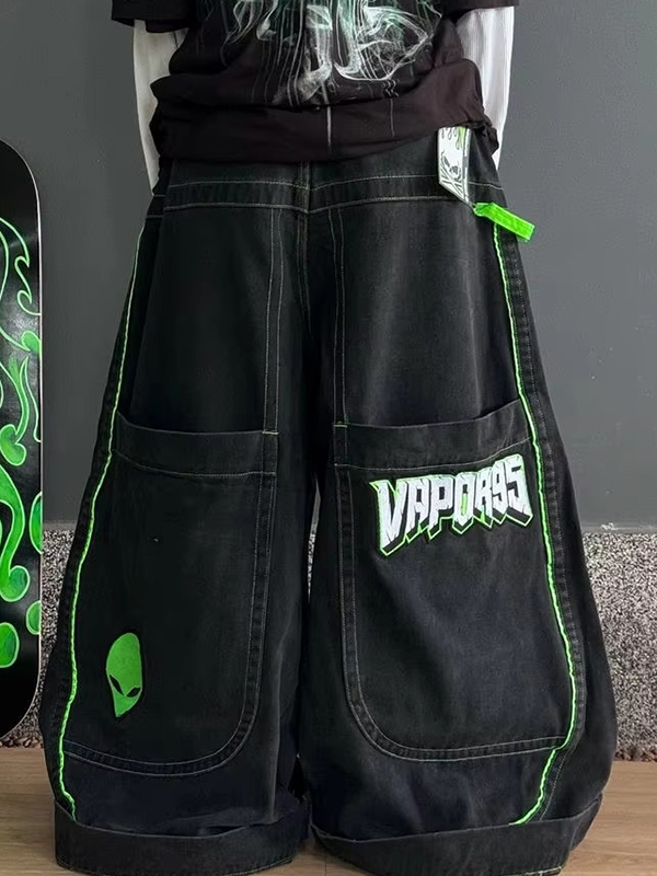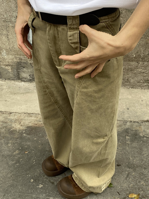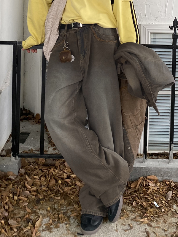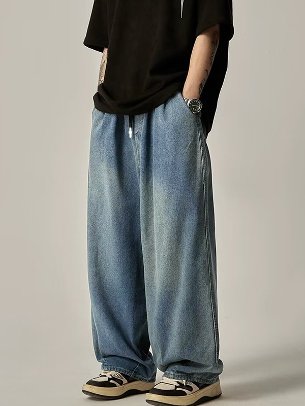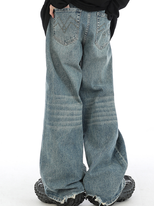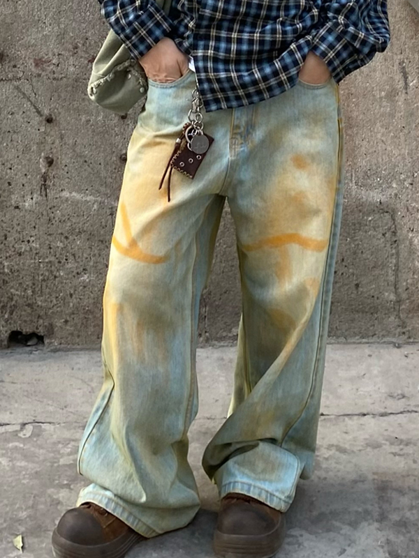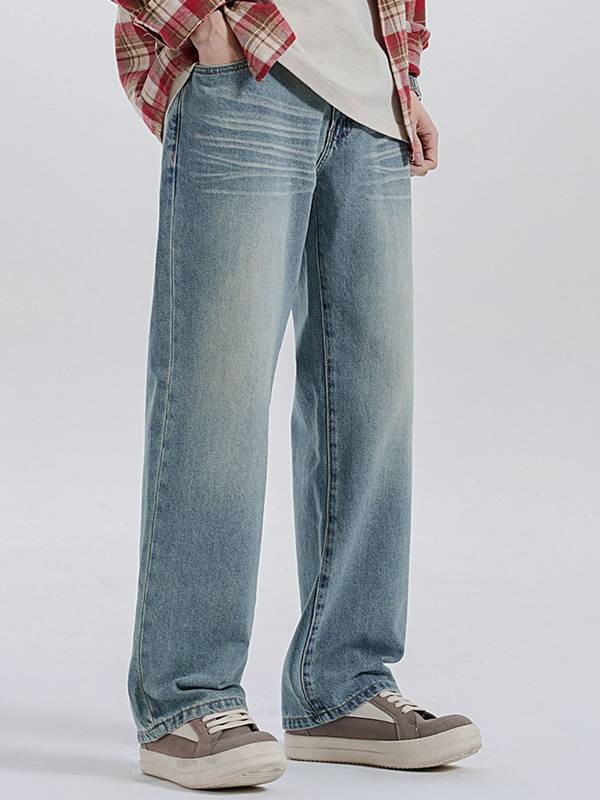Lockere Jeans im American Retro Heavy Industry-Stil mit gewaschenem Bambusmuster