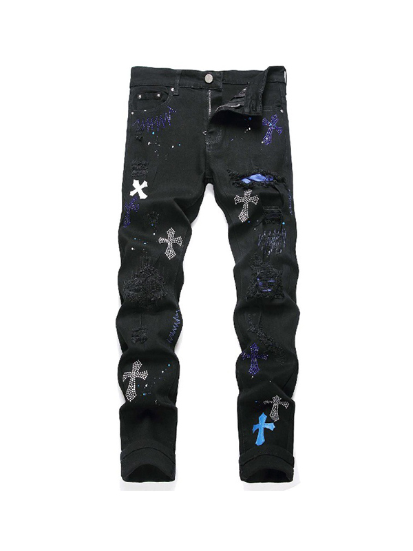 Herrenjeans mit Kreuzabzeichen und Strasssteinen
