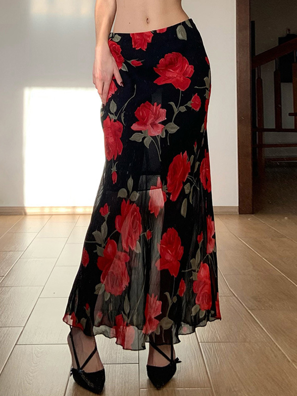 Maxirock aus Netzstoff im Vintage-Stil mit Blumenmuster