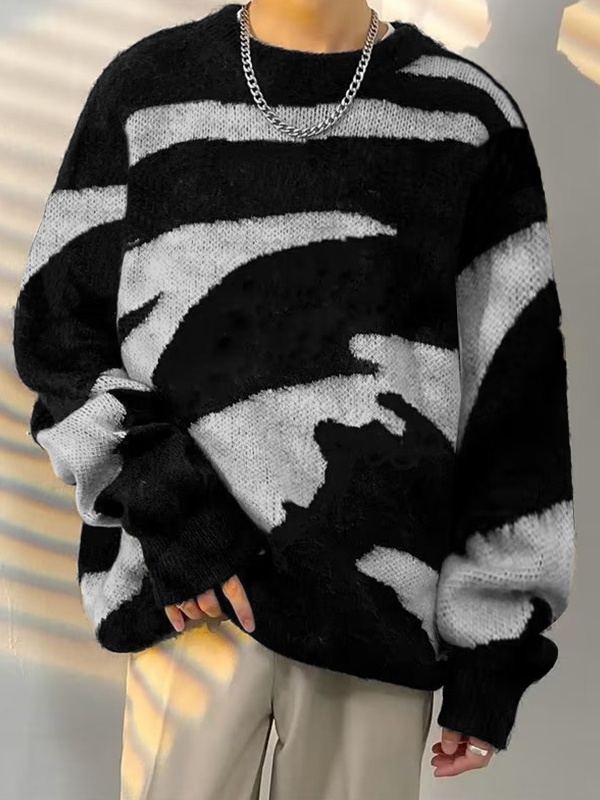 Herrenpullover mit unregelmäßigen Streifen in Kontrastfarbe