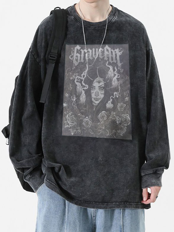 Herren-Sweatshirt mit Distressed-Portrait-Print