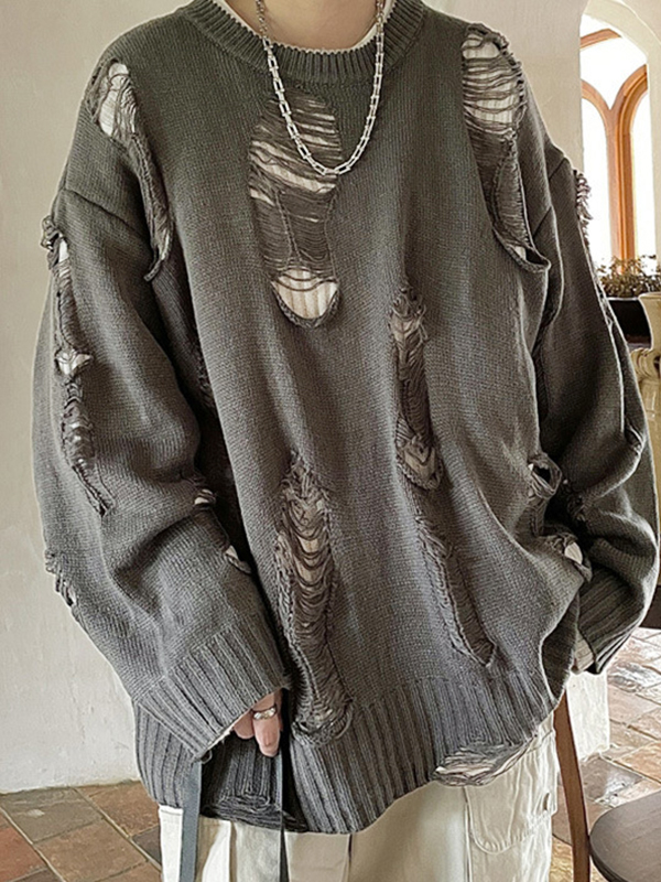 Herren-Pullover mit Fransen, wendbar, locker