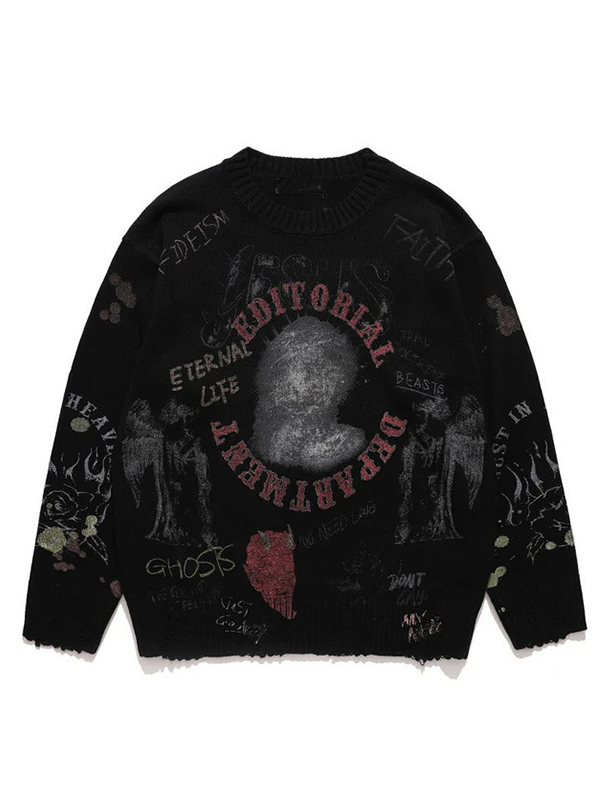 Pullover mit verschwommener Figur und Retro-Print
