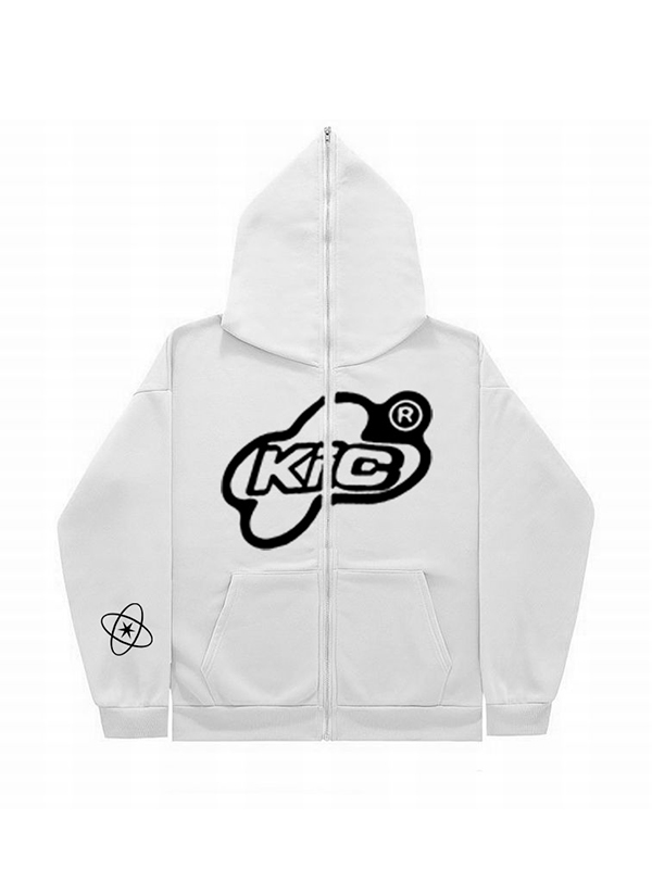 Bedruckter, übergroßer Kapuzenpullover für Herren mit Reißverschluss