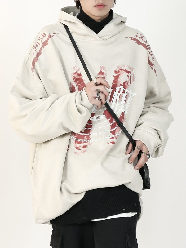 Übergroßer Kapuzenpullover mit kontrastierendem Spinnennetz-Print für Herren