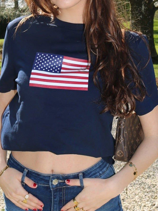 Oversize-Kurzarm-T-Shirt mit Flaggen-Print