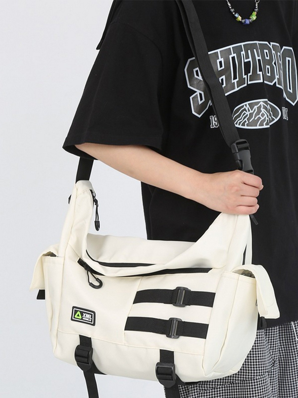 Große Umhängetasche aus Nylon mit Schnallenriemen