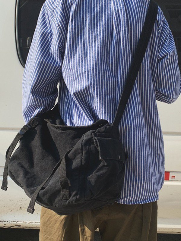 Gewaschene große Canvas-Umhängetasche