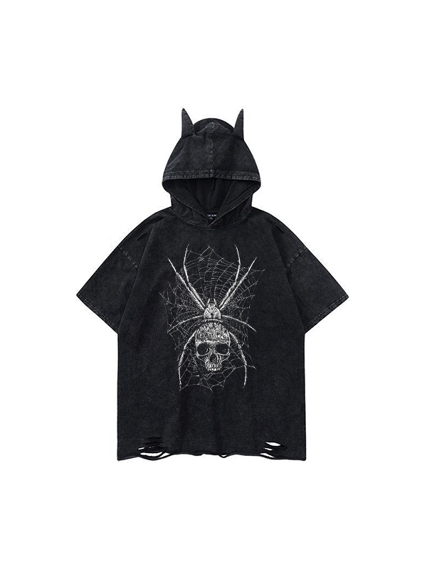 Kurze Ärmel mit kleinem Teufelsschädel-Print